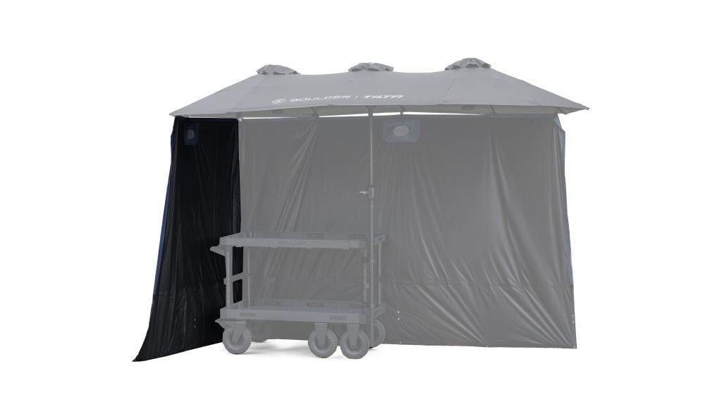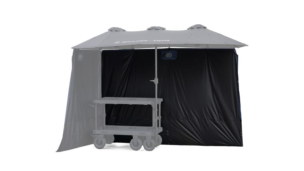 El parasol extensible para carrito de cámara Boulder está diseñado para crear un entorno de visualización controlado y con poco reflejo para el monitoreo en el set y las configuraciones de la aldea de video.