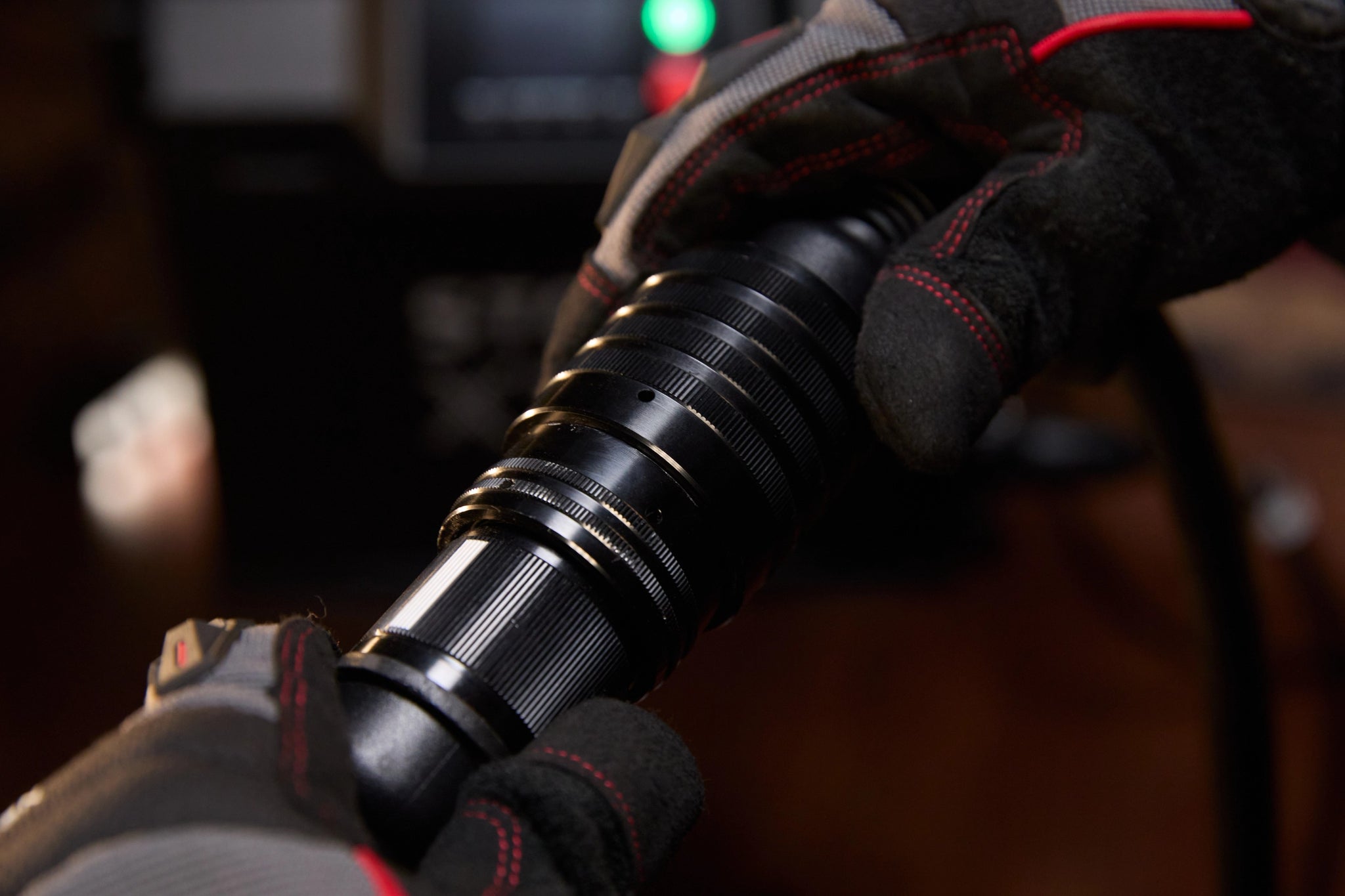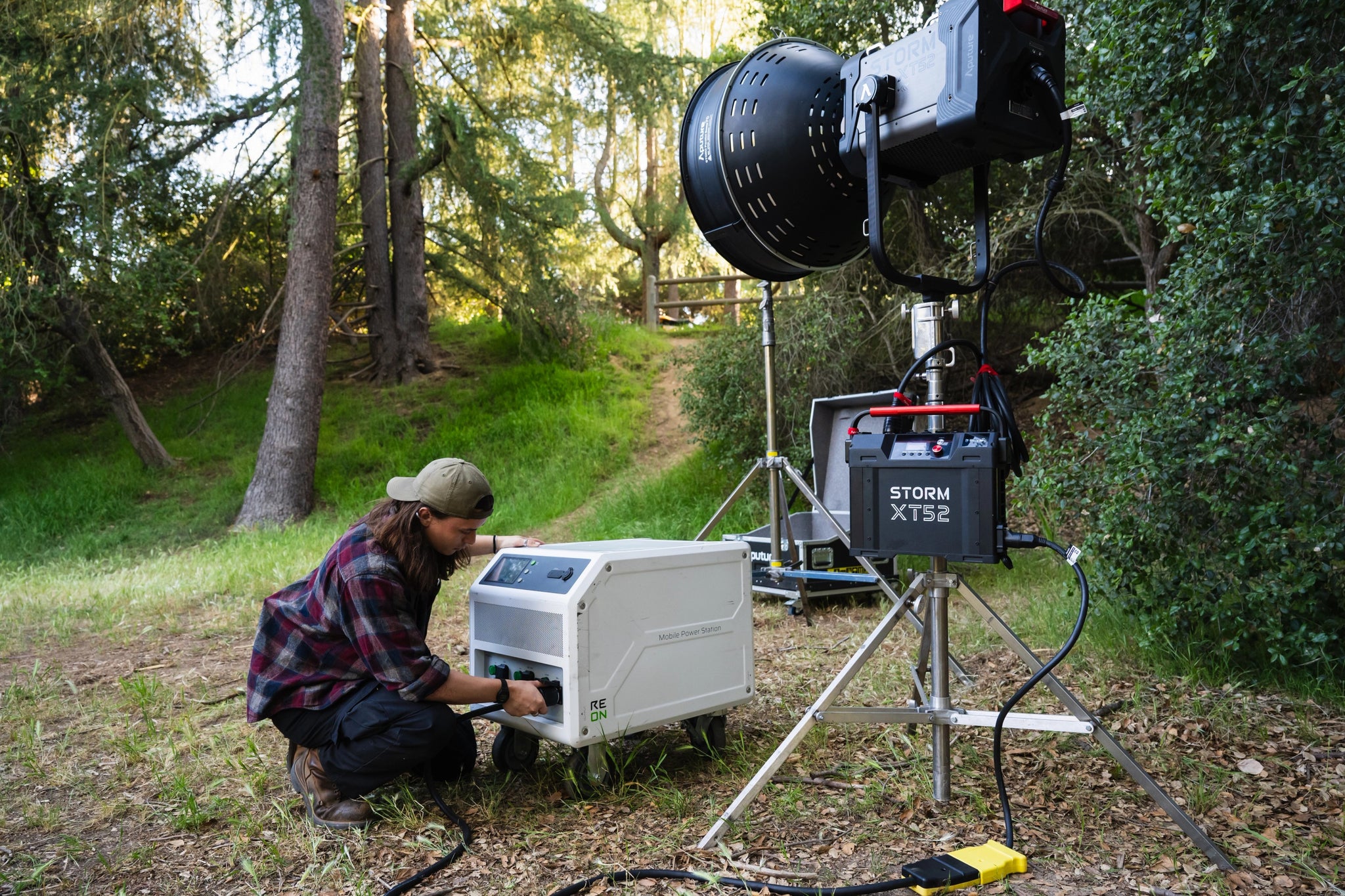 Extienda el cable del cabezal STORM XT52 de 7,5 m hasta 45 m. Coloque el cabezal de la lámpara en una plataforma elevadora y deje la caja de control en el suelo para ahorrar peso y tener los controles físicos cerca. Alimenta la STORM XT52 a máxima potencia con generadores estándar de 6500W.