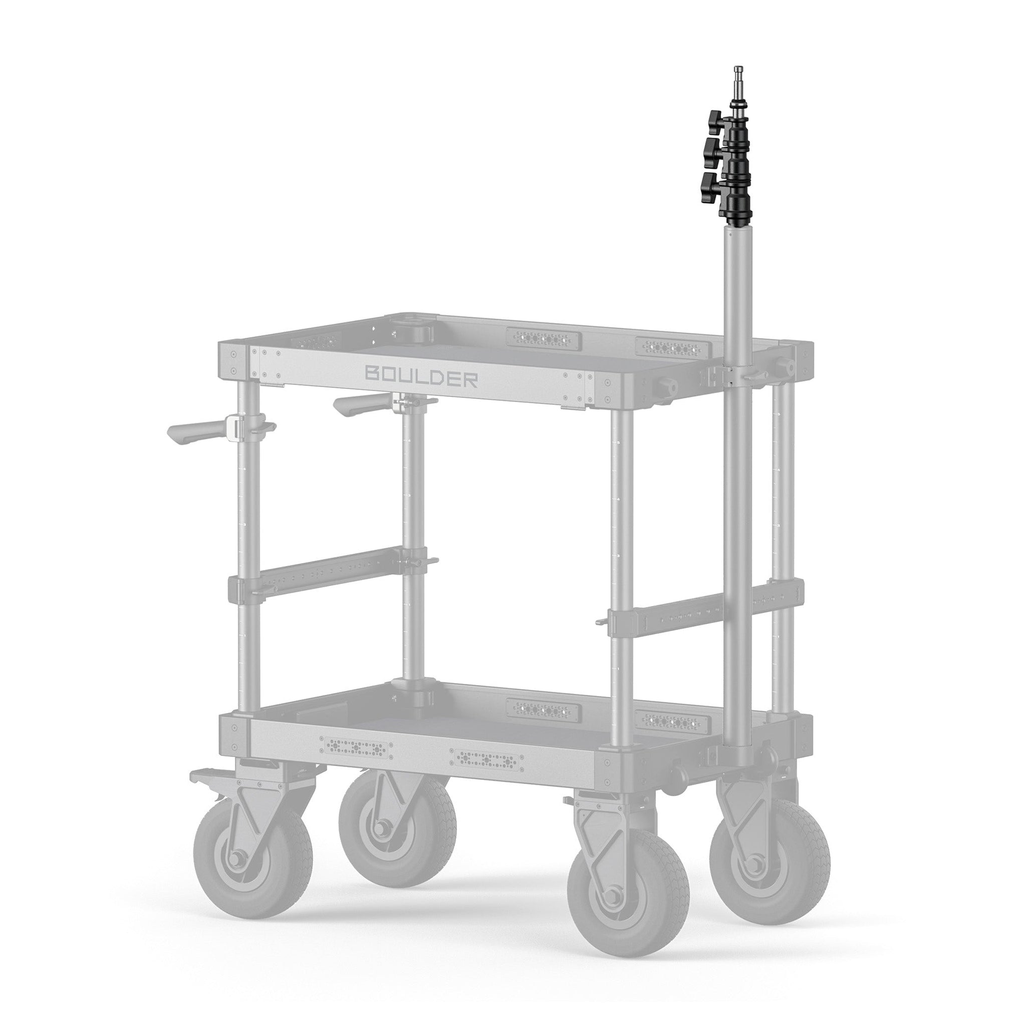 Este soporte se monta en cualquiera de las cuatro esquinas de la bandeja superior del carrito para cámara Boulder.