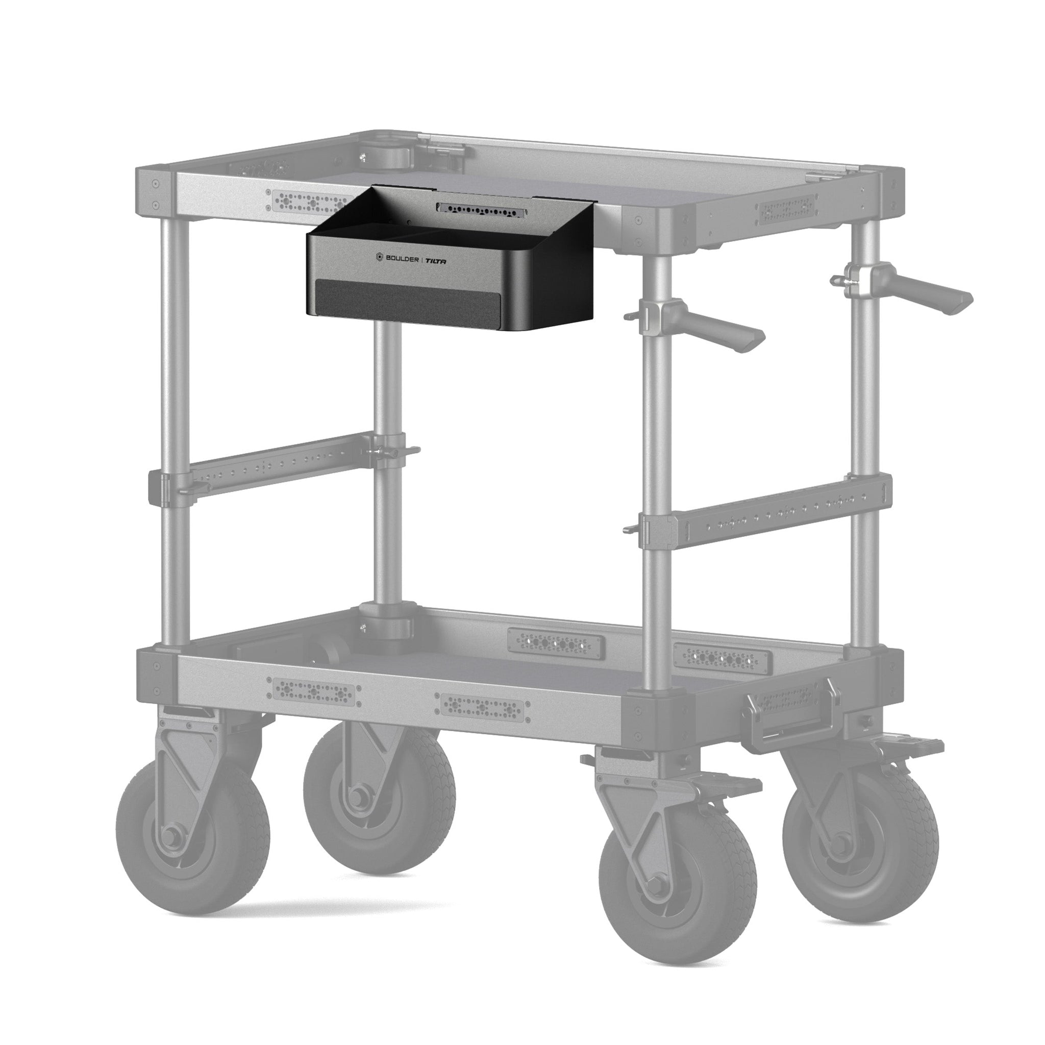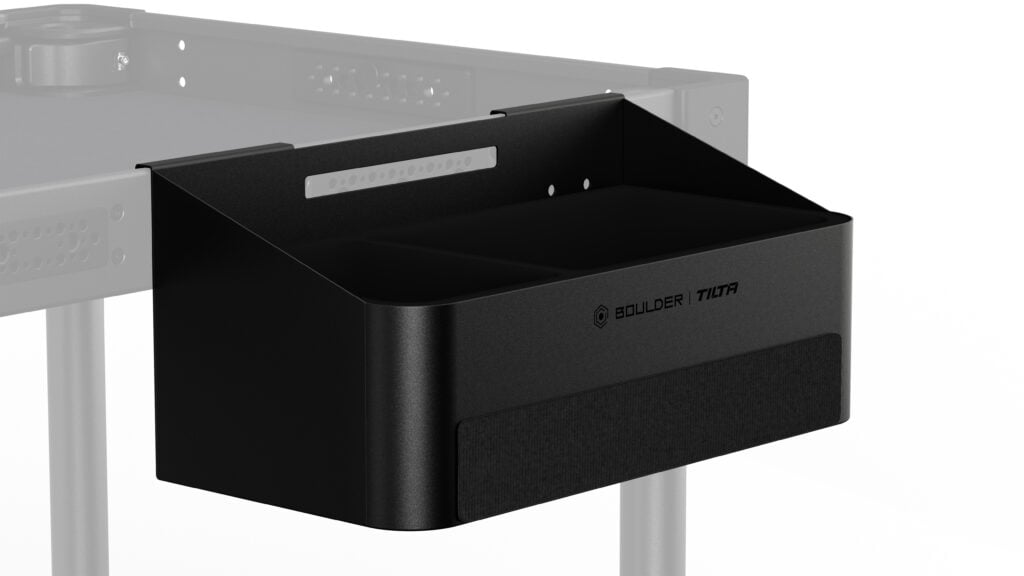 Este compartimento compacto y práctico se acopla directamente a la bandeja lateral del carrito para cámara Boulder, ofreciendo un espacio de almacenamiento exclusivo para herramientas pequeñas, accesorios y otros artículos de uso frecuente. Su diseño de doble compartimento facilita mantener el equipo organizado y separado, garantizando un acceso rápido durante las configuraciones más exigentes.